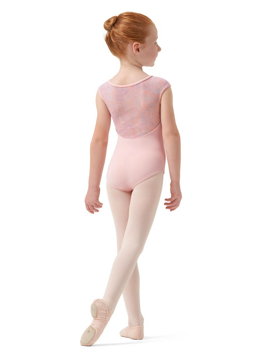 Mirella V-Neck Cap Sleeve Leotard with Printed Mesh Back M1558C
