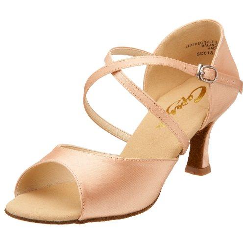 2" Heel Social Dance Ballroom Shoe SD01 from Capezio is an exceptional ballroom shoe. These shoes feature a reinforced 1/2 shank for flexibility and a customized wear strap that provides extra support. The ballroom shoes have a single layer memory foam insole that provides seamless comfort and shock absorption. Also, the folded edges, padded collar and Achilles notch provide you with ultimate heel comfort. This open toe style has criss-cross ankle straps and slender buckle that ensures the perfect fit.