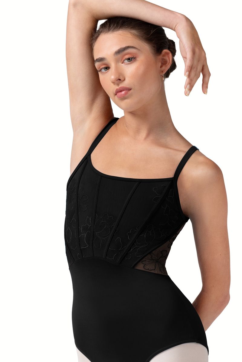 The Mia Corset Camisole Leotard L70001 from Bloch’s Camellia Collection pairs delicate detailing with a sleek silhouette. Featuring a floral embroidered corset-style bodice and a striking full mesh back, it blends elegance with breathability. Inspired by the collection’s signature delicate blooms and feminine lines, this camisole design creates a beautifully flattering look.