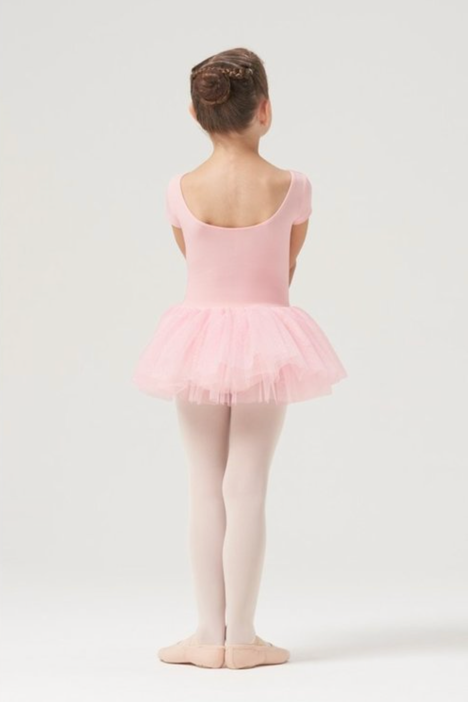 Clara Cap Sleeve Glitter Tutu Dress CL1022 from Bloch is the cutest spin on a classic design. This cap sleeve leotard features a built in tulle skirt with a glitter overlay for comfort and ease, plus a scoop neck and back for a simple yet stunning design. This leotard is perfect for your little dancers debut!