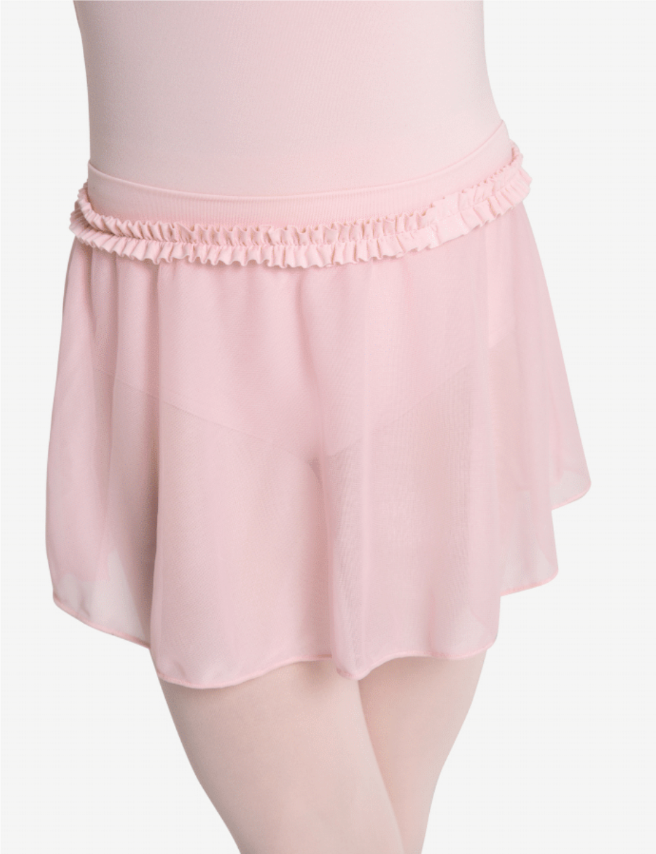 Pluto Skirt 12072C from Capezio is a fun twist on a classic style. This skirt a self-body fabric with ruffled trim and pull-on mesh for easy wear while in the dance studio or on-stage.