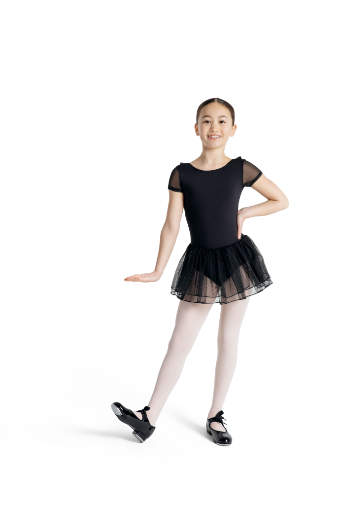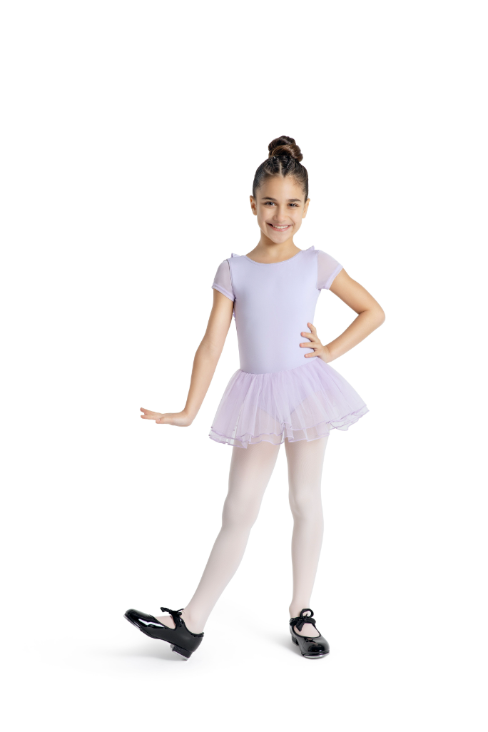 Polaris Tutu Dress 12075C is the world's cutest tutu dress! This leotard features a mesh cap sleeve design with a high neck and a ruffled V-back, making it a standout design. The two-layer tutu with a finished edge brings all the fluff and flair to this beautiful dress!