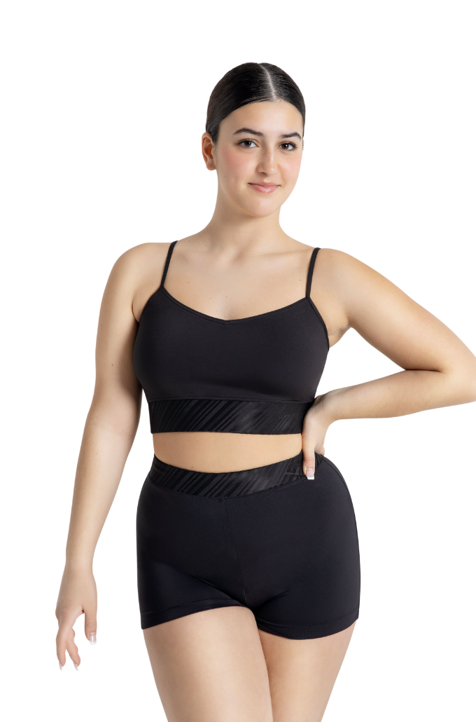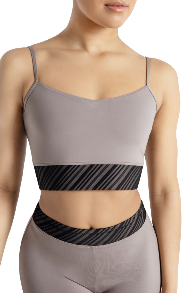 Toronto Bra Top 12044W from Capezio is the perfect activewear top. This bra top features a camisole style with adjustable straps and a line patterned mesh overlay under the bust. The V front neckline and straight back gives you comfort and style.