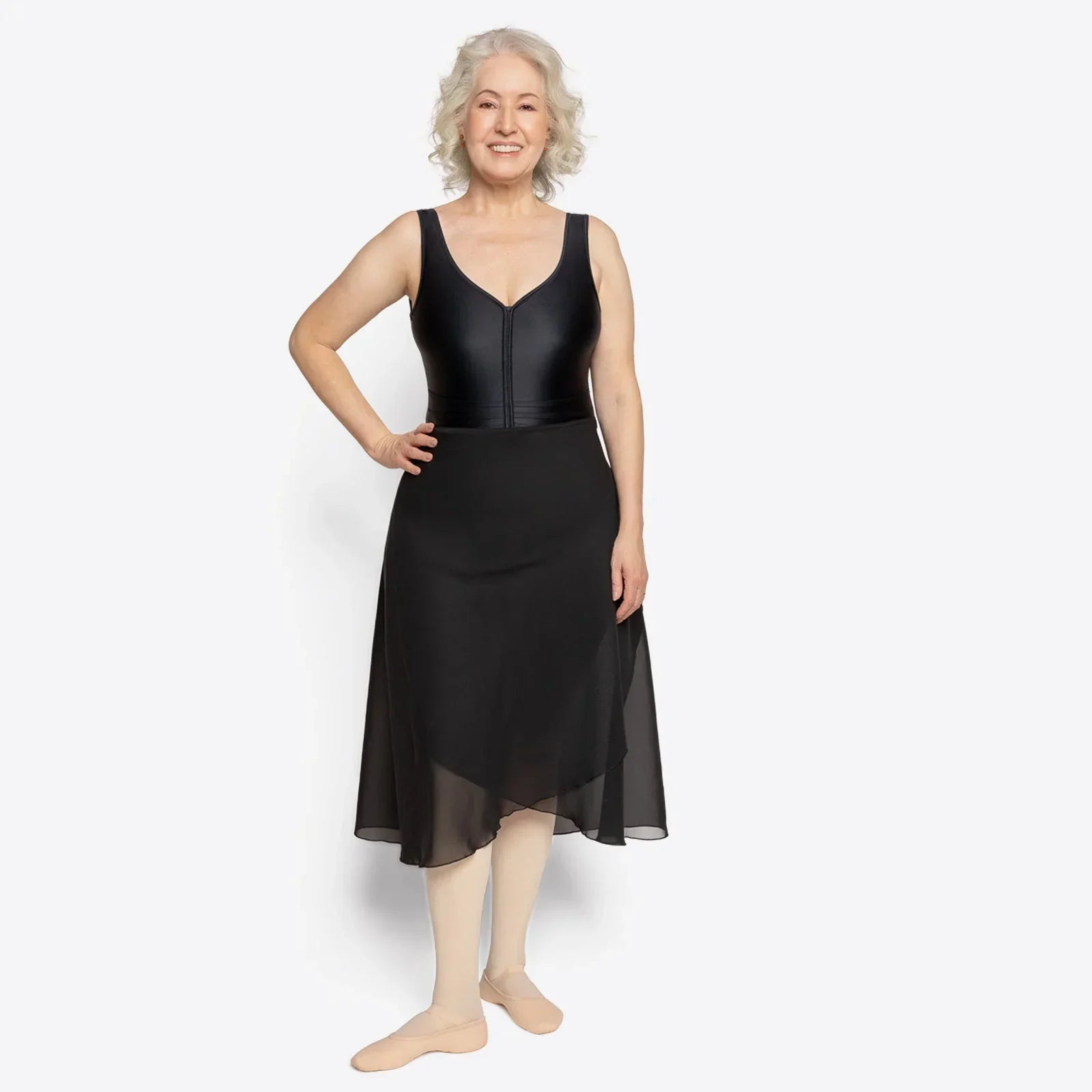 Cordelia Crepe Skirt SD2076 from So Danca is a beautiful skirt designed to help you feel your best. This skirt is a wrap design that allows for a customizable fit, and crepe material for a lightweight feel. This classic skirt is perfect for in-studio practice or on-stage performance.