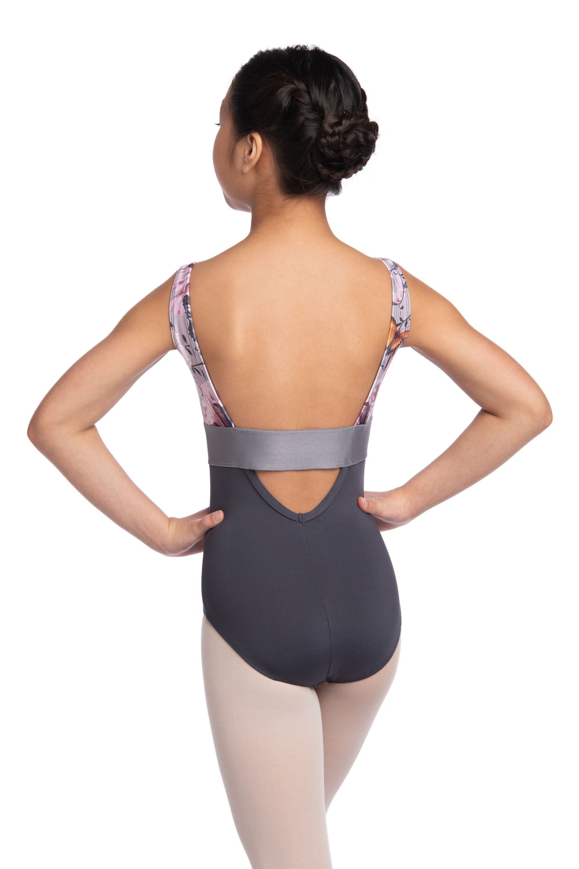 Ainsliewear 1071 Manon Colour Block Leotard is french inspired design with pretty pink colour blocking, a classic neckline, elastic band accent and an elegant low back.