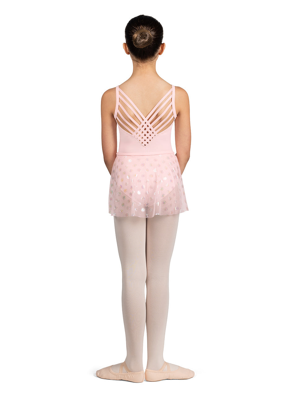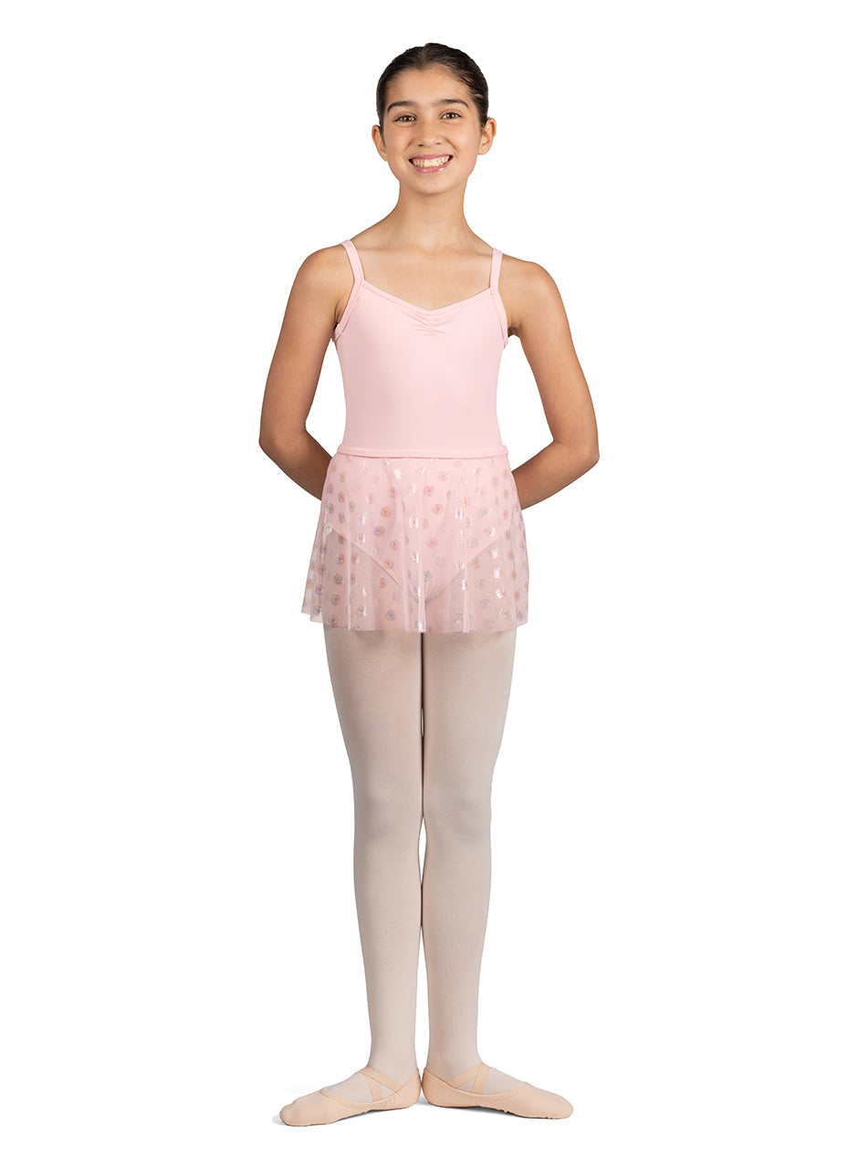 The Glow Girl Iridescent Skirt MS901C from Mirella showcases an elastic waistband ensuring a snug fit along with a dazzling iridescent print design. The Girls' Mirella Glow Girl Collection brings pastel hues to life with its iridescent floral prints. Experience the vibrant charm of Mirella’s Glow dancewear.