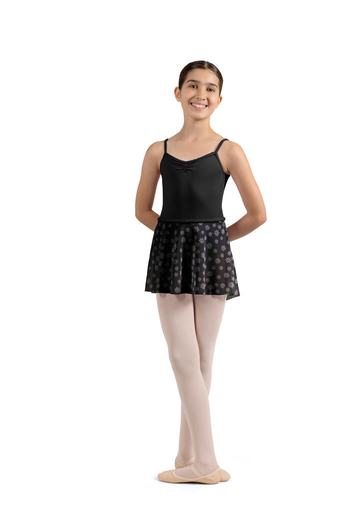 The Printed Mesh Skirt with Braid Detail MS900C from Mirella is a super cute addition to your class attire. As part of the Mirella Miami collection, this skirt features braid detailing and a fun floral print.