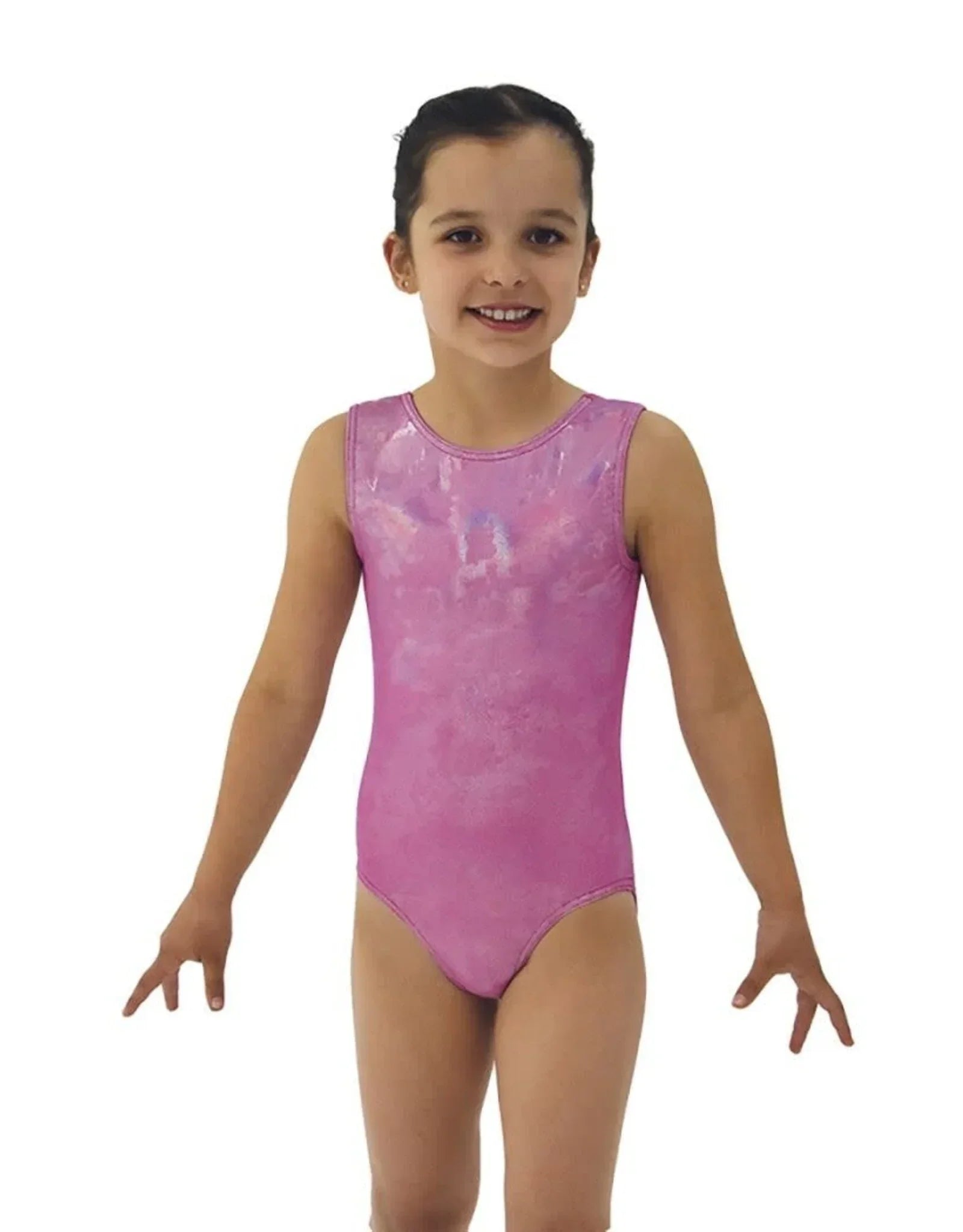 The Sleeveless Leotard 17822 by Mondor in metallic pink is a stylish and comfortable choice for young gymnasts. This sleeveless leotard features a sleek, metallic finish that adds a touch of shimmer to every movement. To complete the look, a matching hair tie is included, making it a perfect addition to any dance or gymnastics wardrobe.