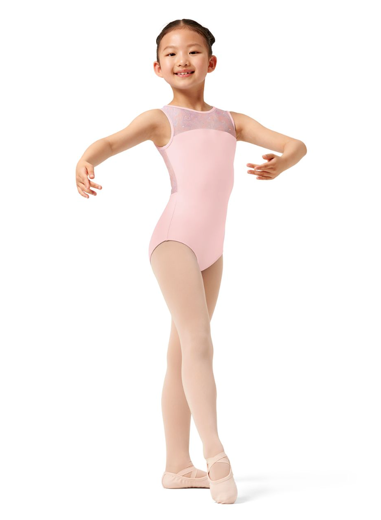Features of the Mirella Tank Leotard with Printed Mesh Keyhole Back M486C