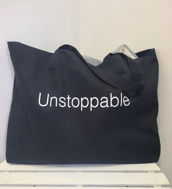 The Unstoppable Oversized Tote Bag is a generously sized cotton denim tote perfect for all your carrying needs. Whether it's for a dance class, a beach day, or weekend errands, thus durable bag has you covered.